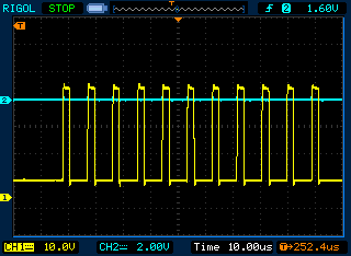 - If there is a signal, then pulse generation is started: set 0 to PD7, wait 2.6 microseconds, set 1, wait 6.5 microseconds